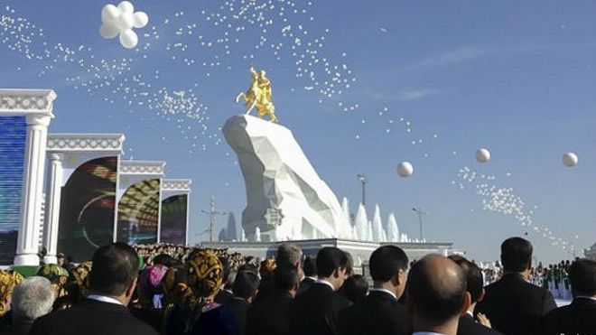 رونمایی از مجسمه زراندود رئیس جمهور ترکمنستان