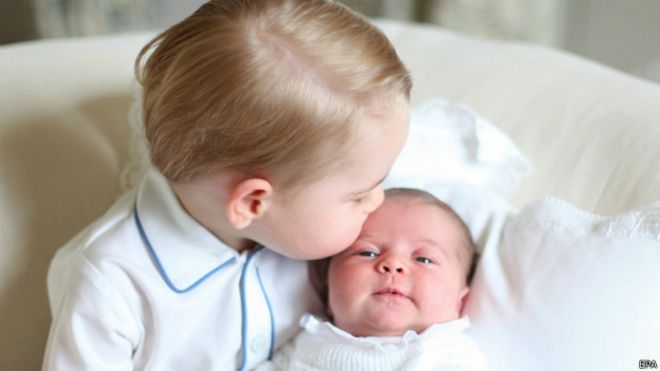 در این عکسها، پرنسس شارلوت که ماه گذشته به دنیا آمد در بغل برادر دو سالهاش دیده میشود.