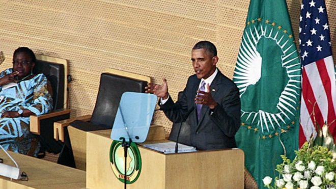 او این سخنان را در مقر اتحادیه آفریقا در آدیس آبابا، پایتخت اتیوپی بیان کرد. پیش از این آقای اوباما به کنیا، زادگاه پدرش سفر کرده بود.