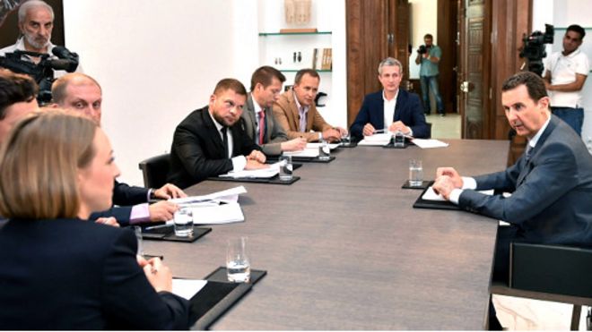 از رئیس جمهوری سوریه در مورد موج پناهجویان که اخیرا راهی کشورهای اروپایی شدهاند سئوال شد. بشار اسد کشورهای غربی را به بهرهبرداری تبلیغاتی از این وضعیت متهم کرده و گفته است که آنها این نظر را مطرح کردهاند که پناهجویان برای فرار از حملات "رژیم" سوریه از کشورشان گریختهاند. آقای اسد گفت کشورهای غربی "با یک چشم برای پناهجویان اشک میریزند و با چشم دیگر آنها را هدف مسلسل قرار میدهند."