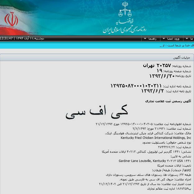 این رستوران زنجیرهای که یکی از مشهورترین فستفودهای دنیاست، با نام "کیافسی حلال ایرانیان" در ایران ثبت شده است.