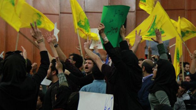 بر اساس گزارش ها "عدهای با شعار حزبالله حزبالله" مانع ادامه سخنرانی او شدند.