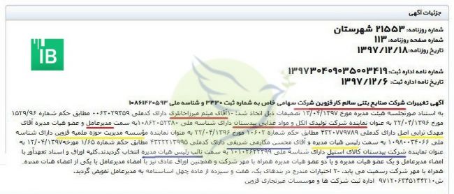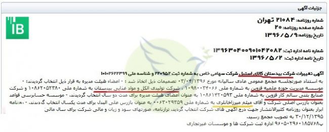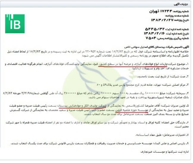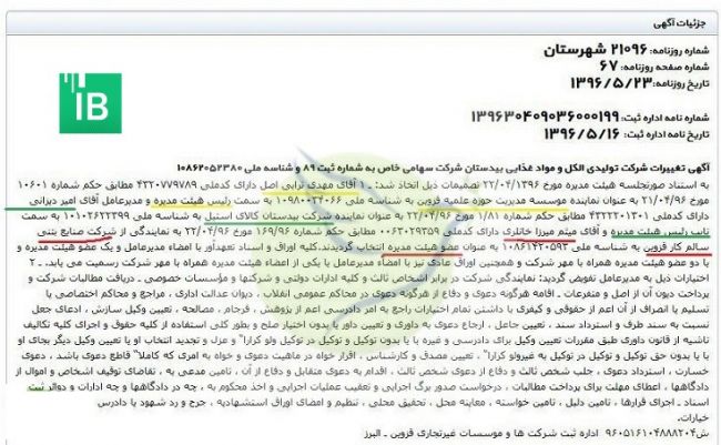 جالب اینکه در آگهی تغییرات شرکت بیدستان کالای استیل، نام دو شرکت صنایع بتنی سالم کار قزوین و شرکت تولید الکل و صنایع غذایی بیدستان به عنوان اعضای هیات مدیره این شرکت و شخصی به نام میثم خانلری به عنوان بازرس دیده میشود.